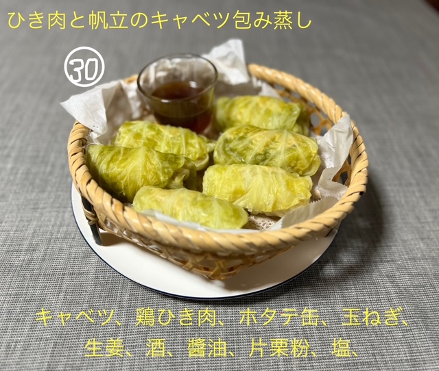 材料:白菜、人参、椎茸など野菜と鯖缶、 46