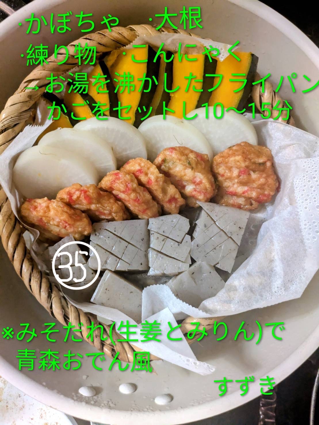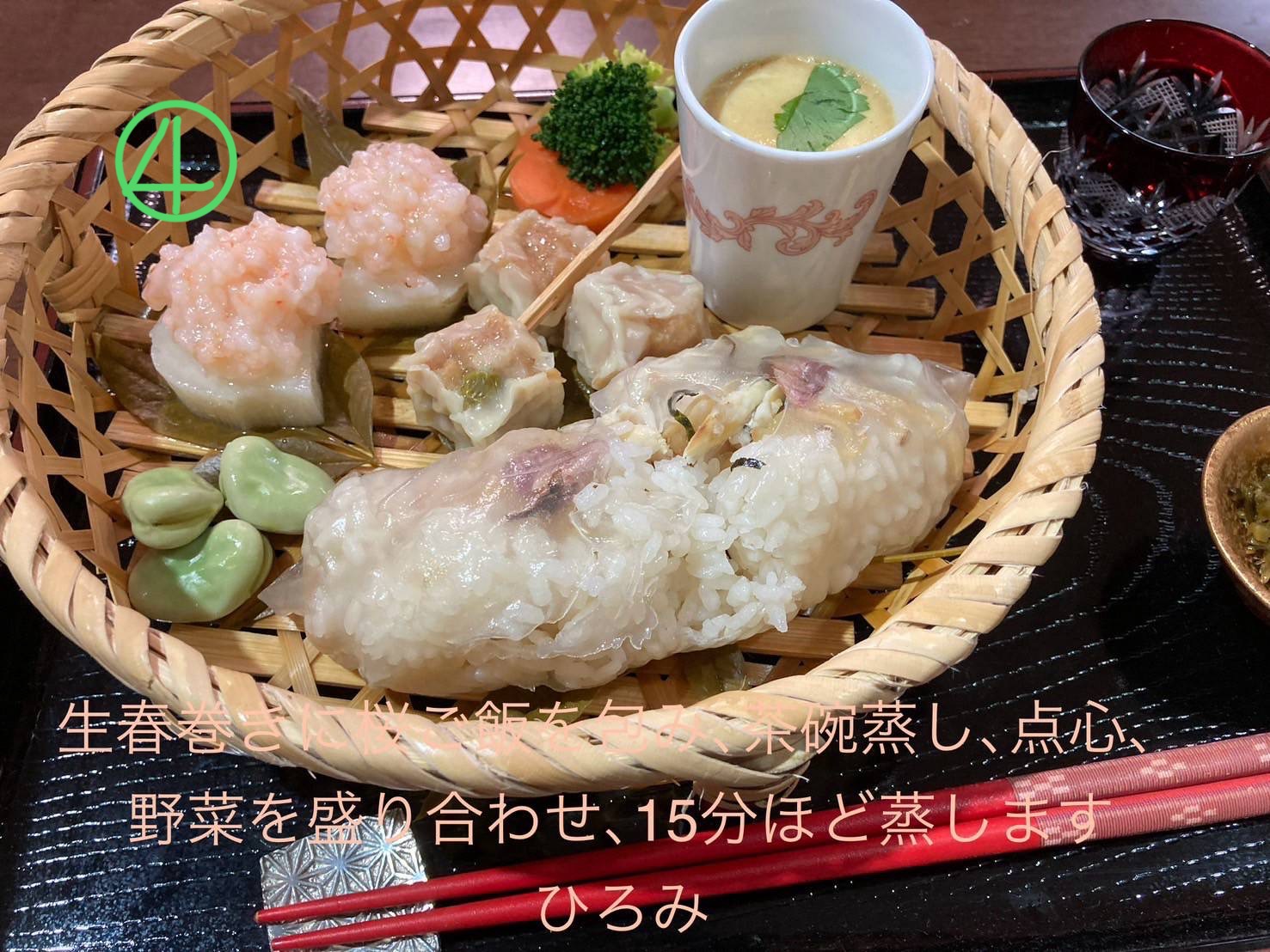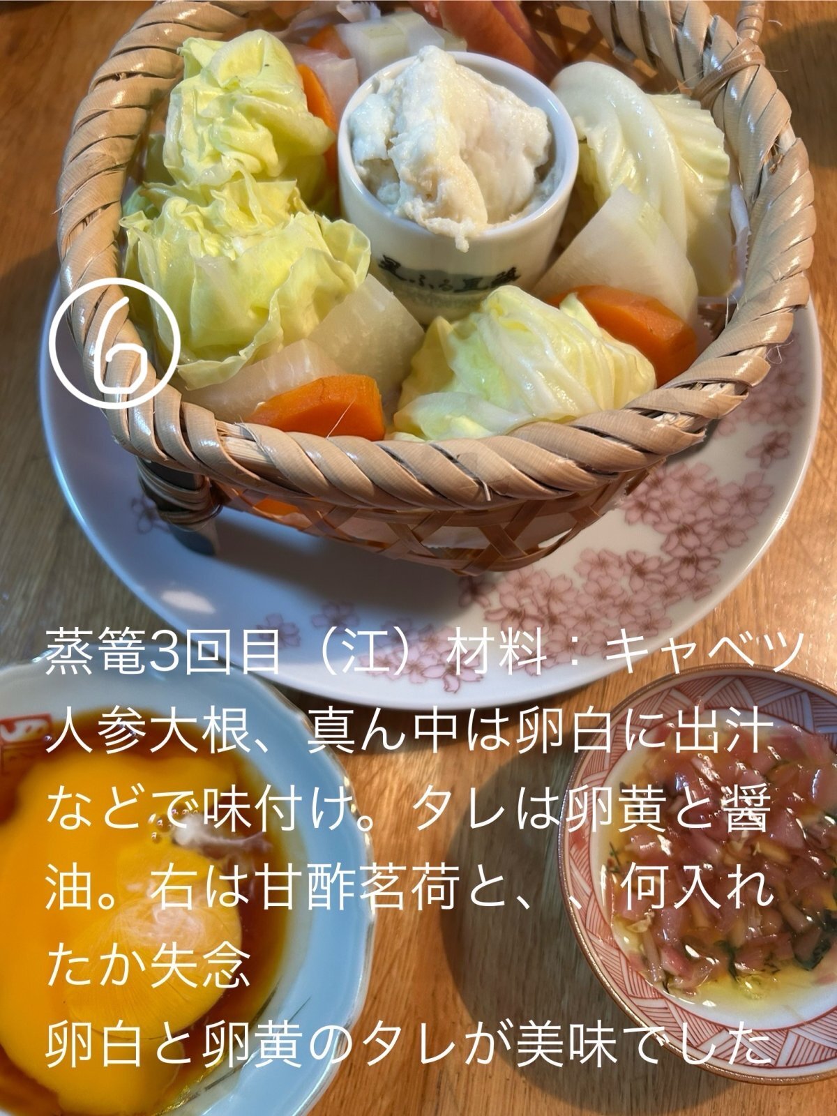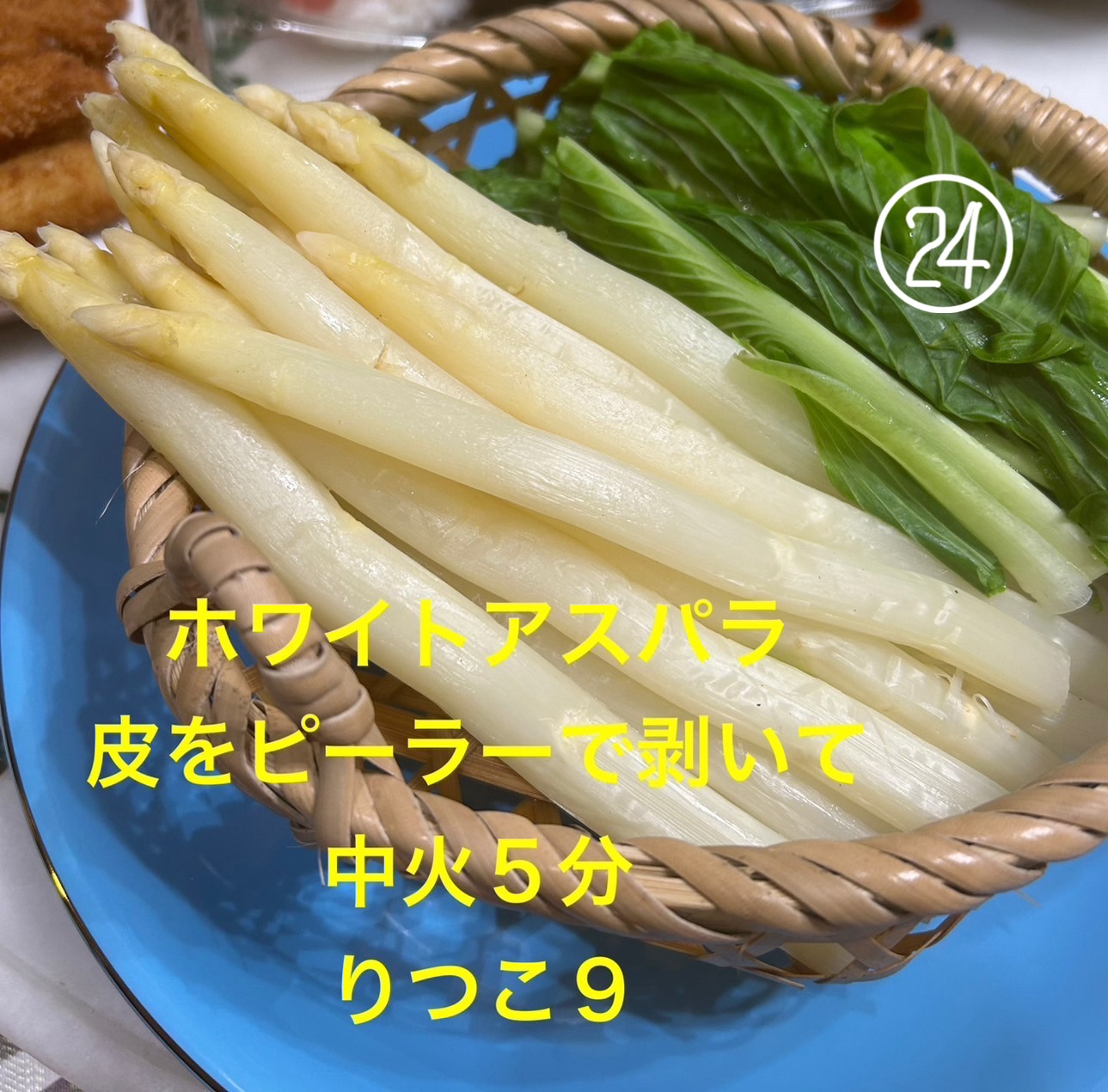 ホワイトアスパラ&うるいの蒸し物 お湯が沸騰してから中火で5分蒸します。